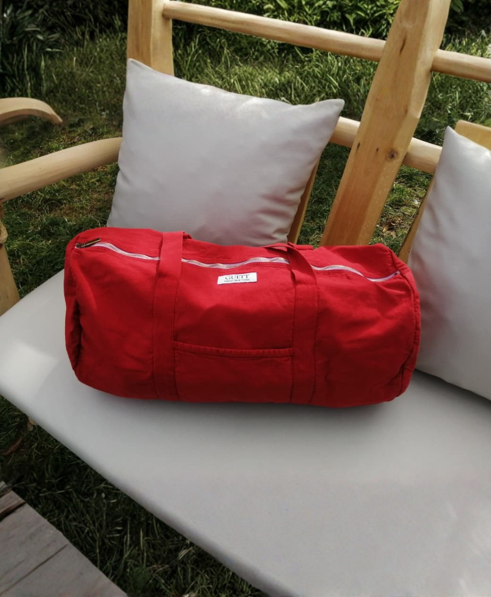 Un sac polochon rouge audacieux, pratique et stylé — conçu pour les esprits actifs qui veulent allier fonctionnalité et caractère.