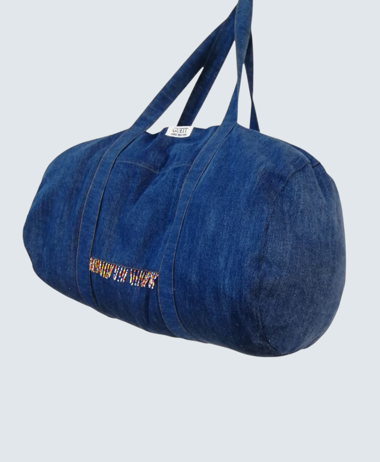 Un sac polochon en denim au style street et artisanal, idéal pour les esprits libres. Pratique, stylé et unique — il vous accompagne partout avec caractère.