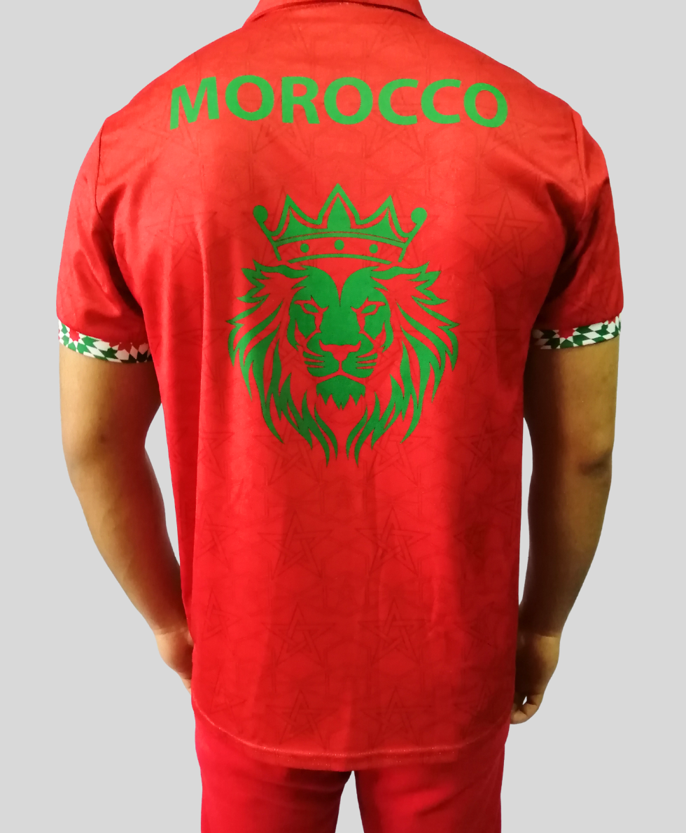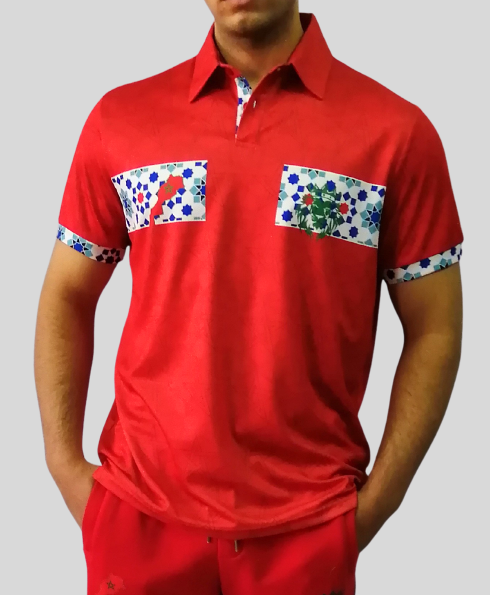 Ce polo « MOROCCO » est une pièce originale et raffinée, conçue et fabriquée au Maroc pour les supporters qui veulent allier élégance, culture et identité nationale :