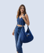 L’élégance décontractée prend vie avec ce sac SUEFI en denim souple. Un accessoire pensé pour les esprits libres, entre confort, style et praticité.